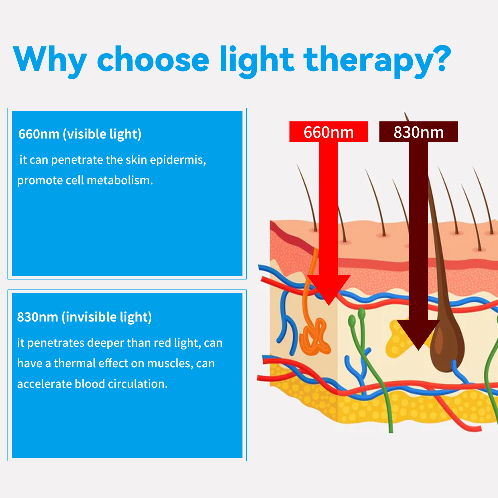Red Light Therapy: Utilizes 850nm infrared technology for scalp treatment and hair growth stimulation